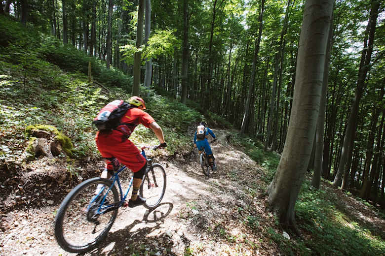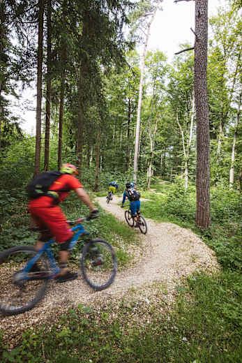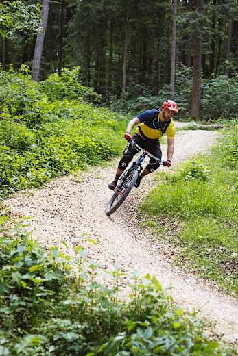Das kleinste vordere Kettenblatt wird im Anschluss am Uphill Jausenteich (Fahrtechnische Schwierigkeit: S0) ein letztes Mal zur Arbeit gezwungen, Schiebepassage je nach Kondition und Technik inklusive! Nach dieser Herausforderung am höchsten Punkt der Tour angelangt, geht es vorüber am Kletterpark zum Freizeitgelände Waldheim zurück. Bei guter Witterung kann bei einem kühlen Getränk im Bayerischen Biergarten am Waldheim das Erlebte Revue passieren.