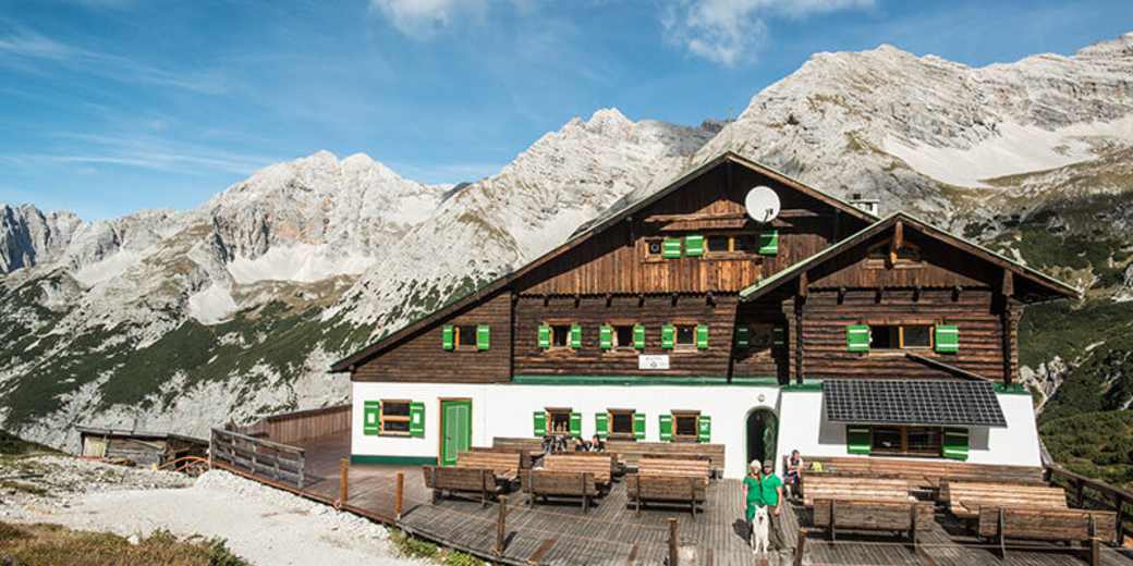 Mit der Pfeis-Hütte des Alpenvereins wartet am Ziele der anstrengenden Tour eine schöne Einkehrmöglichkeit.
