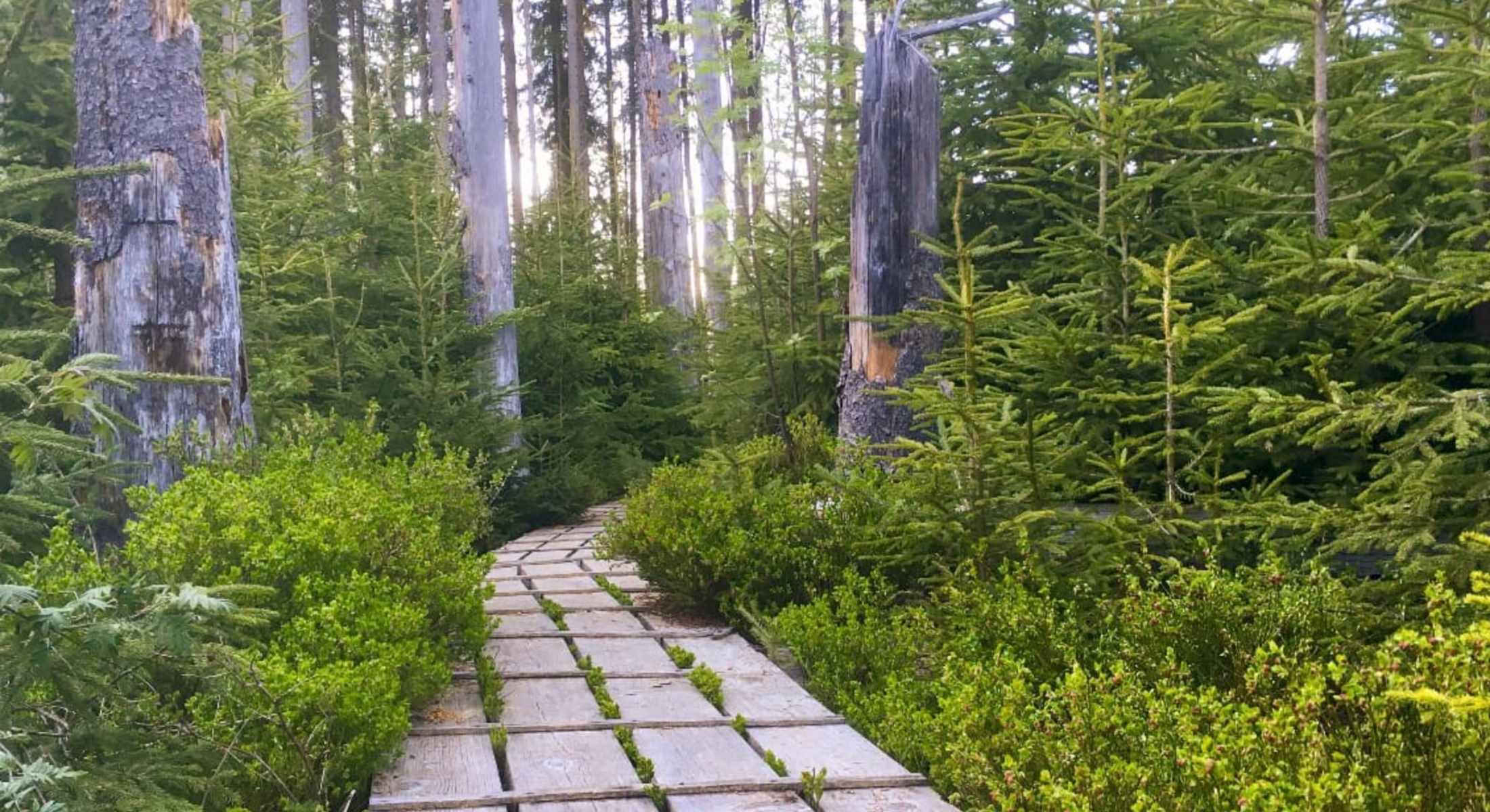 Wir starten am P+R Spiegelau oder dem Bahnhof Spiegelau, überqueren die Waldbahn-Gleise und fahren durch das Waldspielgelände auf dem ‚Nationalpark-Radweg‘. Vorbei an den Spielplätzen des Waldspielgeländes radeln wir auf einem ebenen, gemütlichen Weg in Richtung Nationalparkzentrum Lusen. Nach kurzer Zeit lichtet sich der Wald, wir biegen rechts und kurz darauf wieder links ab und überqueren wenig später die Nationalparkstraße.
