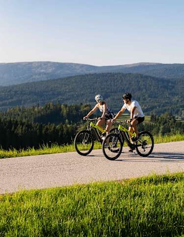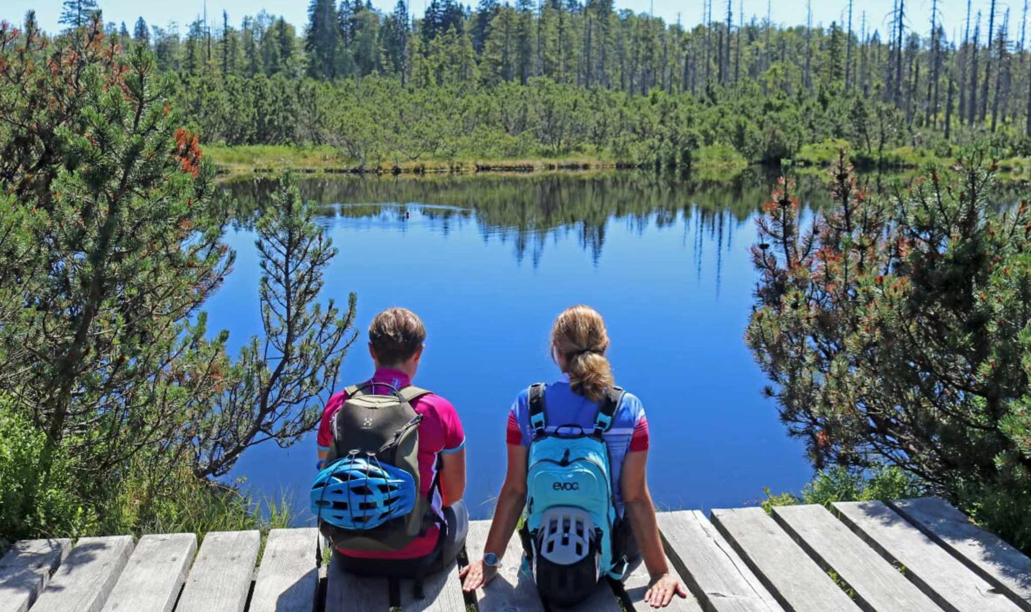 Mit dem Fahrrad bietet sich eine sportliche Tour bis zum Hochschachten oberhalb der imposanten Trinkwassertalsperre Frauenau im Nationalpark Bayerischer Wald.