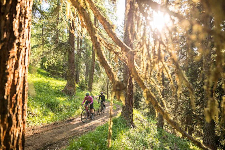 Von Sent folgen Sie der Mountainbike-Route Nr. 442 links weg ins Seitental Val Sinestra. Sanfte Steigungen wechseln sich ab mit steilen Rampen. Der Untergrund wechselt schon bald von Asphalt auf Kies. Die Landschaft ist abwechslungsreich: Fahren Sie zu Beginn durch dichten Wald, wechselt sich dieser schon bald mit einer tiefen Schlucht und später auf der Alp Patschai (1.943 m ü. M.) mit Alpenwiesen ab. Nach einer kurzen Abfahrt zur Brücke Punt Crusch (1.920 m ü. M.) steigt die Route nochmals kurz und heftig an. Der Mountainbike-Route folgend erreichen Sie nun den entlegensten Punkt der Runde. Rund 250 Höhenmeter knackige Singletrail-Abfahrt warten nach Zuort (1715 m ü. M.), einer idyllischen Waldlichtung weitab von Lärm und Hektik.