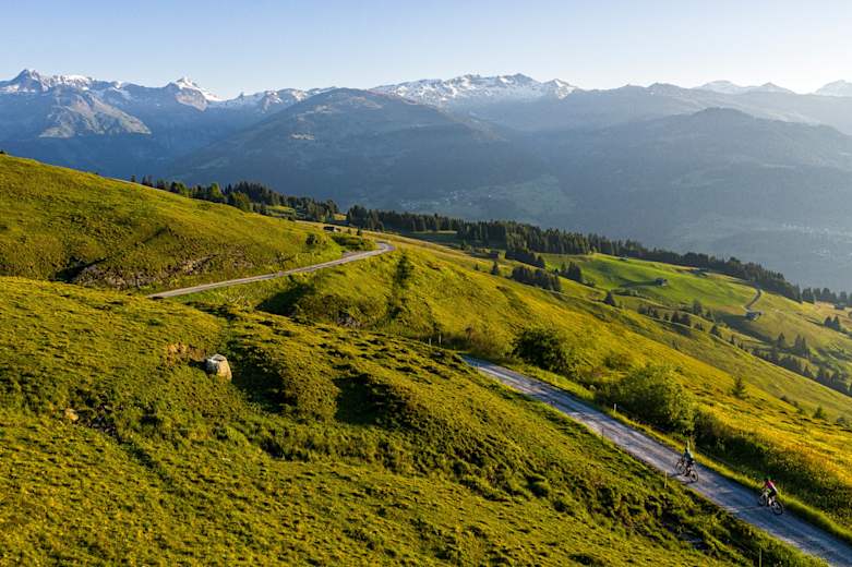 Eine anspruchsvolle Gavelbike-Runde, die das Bergmassiv südlich von Ilanz in Graubünden mit Hitzeggerkopf und Stei umrundet. Schweisstreibende und steile Anstiege gilt es zu bewältigen, ehe man am Scheitelpunkt, der Alp Nova mit ihren schönen Alphütten eine wunderbare Aussicht geniesst. Danach folgt eine tolle Singletrail-Abfahrt vom Hochplateau Obersaxen hinunter ins Tal.