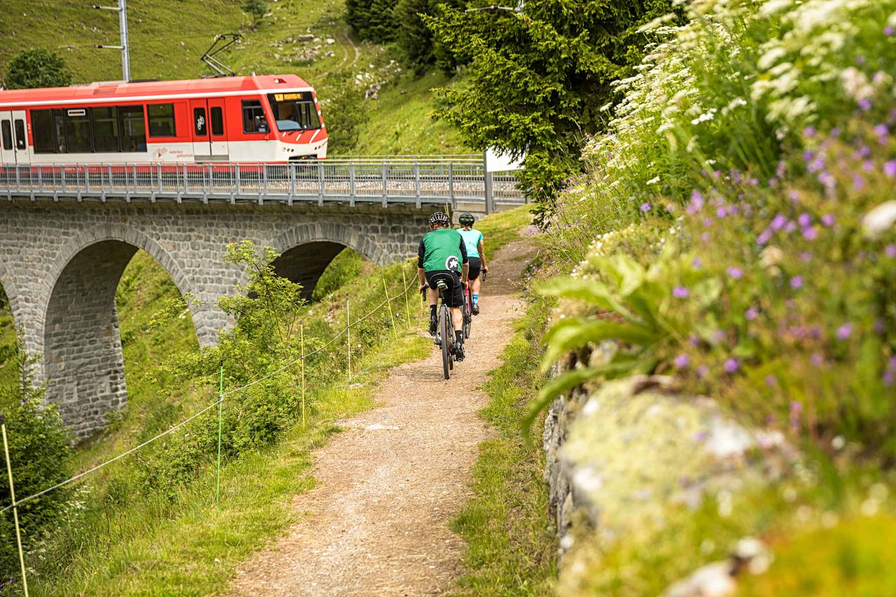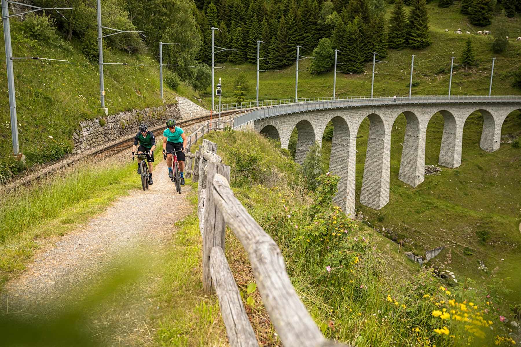 Eine eher kurze, aber wirklich sehr schöne Runde, die jedes Gravelherz höher schlagen lässt: Von Sedrun in Graubünden geht es in einem stetigen Bergauf und Bergab durch die Kulturlandschaft mit wunderschönen Dörfern und dem beeindruckenden Viadukt der Rhätischen Bahn.