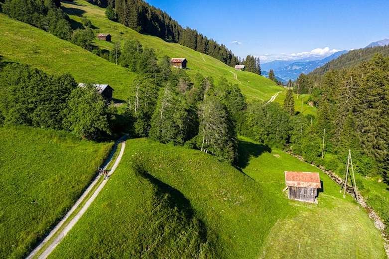 Von Brigels geht es durch die gepflegte Kulturlandschaft. Foto: WOM Medien GmbH Andreas Meyer, Graubünden Ferien