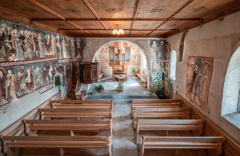 Die Kirche in Waltensburg Foto: tolisart.com, Graubünden Ferien