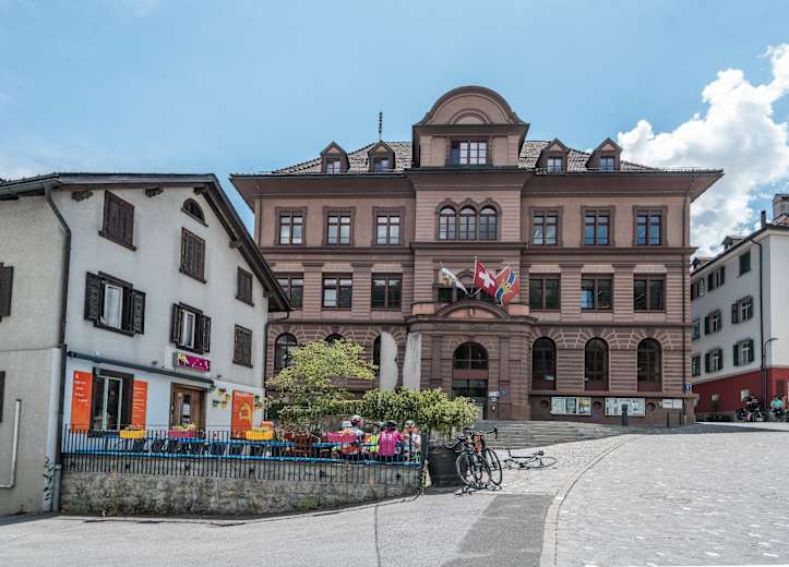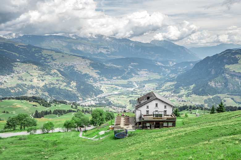 Auf der Abfahrt nach Vignogn erhalten Sie einen atemberaubenden Ausblick in die Val Lumnezia – und an heissen Tagen können Sie sich im Badesee Davos Munts abkühlen. Über Vella (1.244 m ü. M.) geht die Fahrt weiter durch das Tal nach Morissen, wo die letzte Steigung des Tages wartet. Über die kleine Kapelle Sogn Carli gelangen Sie zum Berggasthaus Bündner Rigi. Auf 1.618 Meter überrascht Sie ein zauberhafter Ausblick auf das Val Lumnezia und in die Rheinschlucht. Geniessen Sie die kurvenreiche Abfahrt Richtung Luven (998 m ü. M.), bevor Sie den Gravelbike-Tag in Ilanz (699 m ü. M.), der ersten Stadt am Rhein, gemütlich ausklingen lassen.