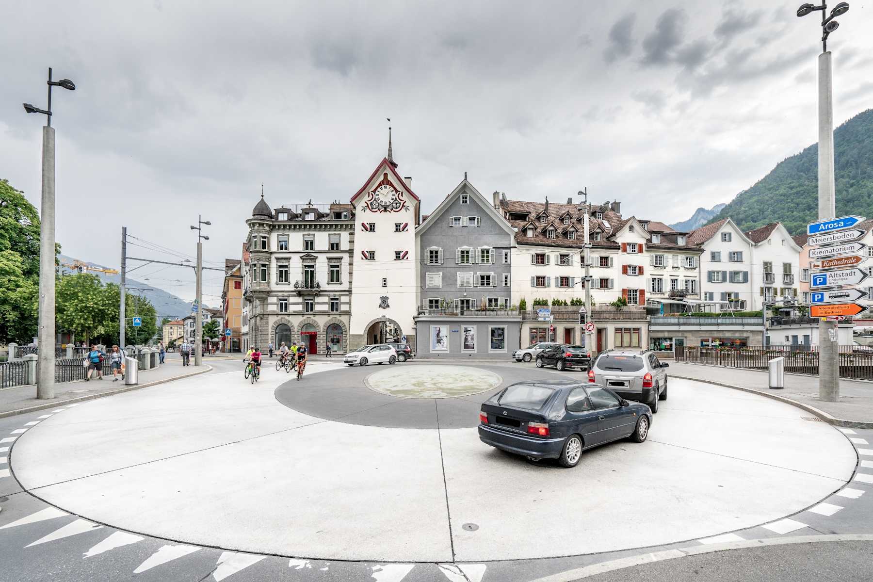 Über Murschetg gelangen Sie auf einer rasanten Abfahrt zurück nach Sagogn und queren den Rhein beim Bahnhof von Valendas (669 m ü. M.). Eine kurze Steigung bringt Sie auf die Strasse hoch über der Ruinualta, die Sie schon von der ersten Etappe kennen. Zum Abschluss geniessen Sie nochmals die Rheinschlucht-Strasse, bevor Sie die Route nach Bonaduz und Reichenau unter die Räder nehmen, wo der Vorder- und der Hinterrhein zusammenfliessen. Gemütlich rollen Sie von hier zurück nach Chur (593 m ü. M.).