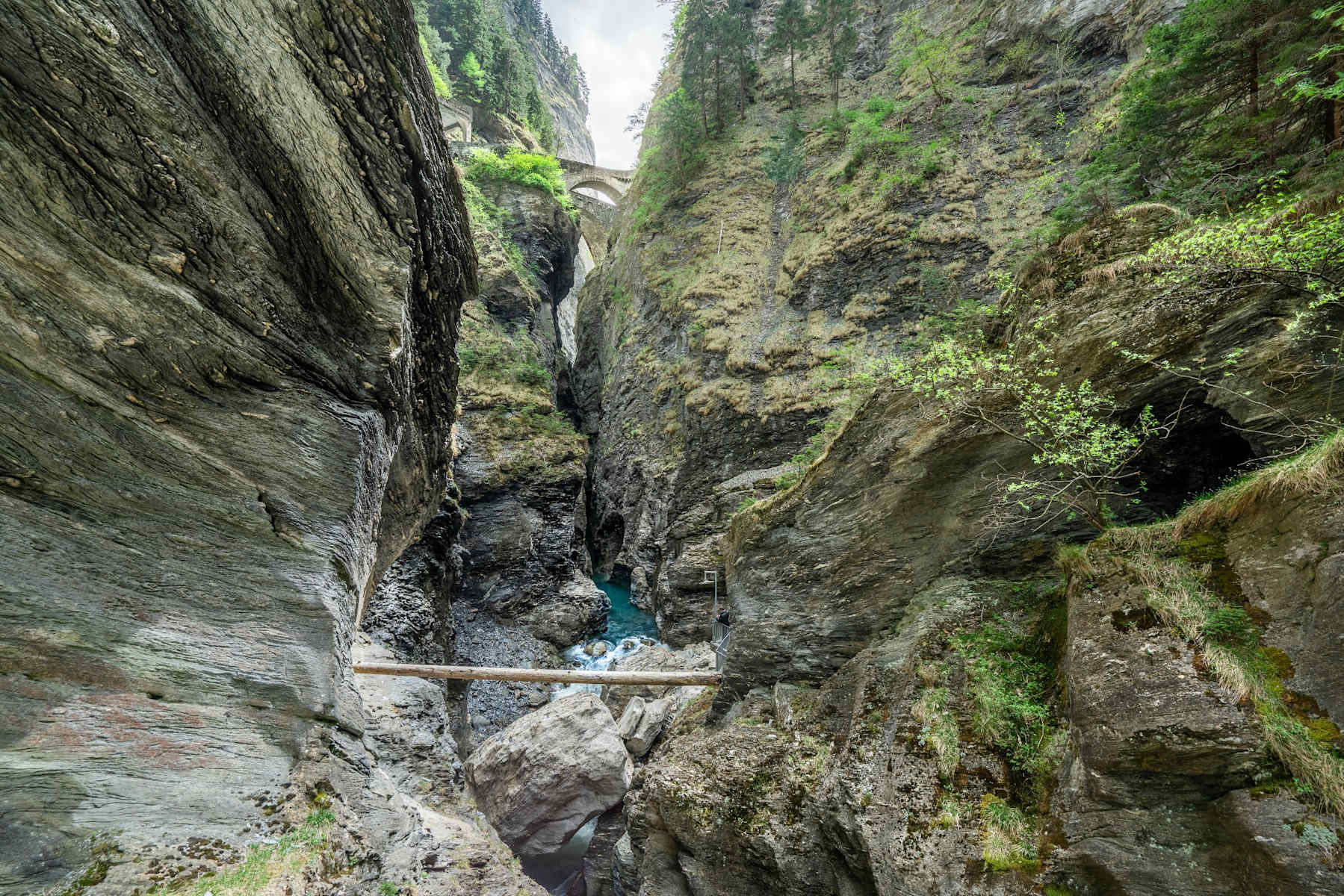 Von Thusis (680 m ü. M.) geht es auf der alten Viamala-Strasse durchs „Verloren Loch“ bis Rongellen. Die 300 Meter hohen Felswände des Naturmonuments Viamala-Schlucht bringen Sie ins Staunen. Die Strasse verläuft hoch über der Viamala und einen Blick in die Schlucht zu werfen, lohnt sich allemal.