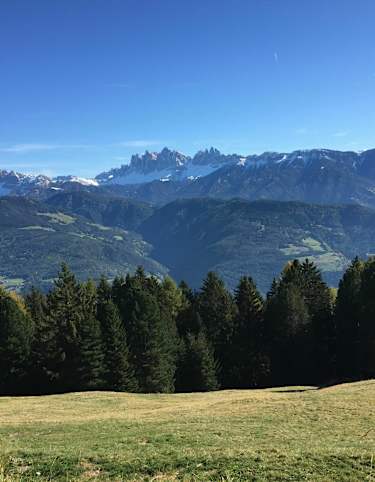 In Naturns bei der Etschbrücke verläuft diese klassische Transalpstrecke in mäßiger Steigung bis zum Parkplatz Kreuzbrünnl und weiter zur Naturnser Alm.