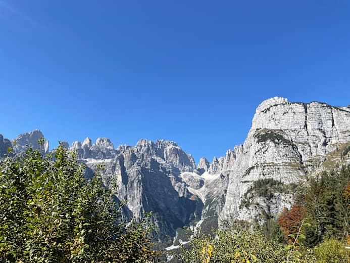 Von Andalo radelt man auf der Via Pradel leicht aufwärts oberhalb des Tales bis zum Rifugio La Montanara. Bis auf die letzten Höhenmeter vor der Hütte, ist der Weg durchwegs Asphalt oder ein Forstweg in moderater Steilheit.