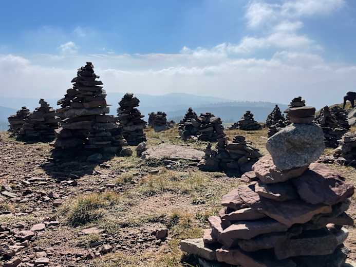 Blick retour zur Seilbahnstation – Auffahrt zu den Stoanernen Mandln Foto: Riki Daurer, alpinonline Auf einfachen Trails geht es auf und ab bis zu den Steinern Mandlen. Foto: Riki Daurer, alpinonline Am Gipfel mit perfektem Ausblick Foto: Riki Daurer, alpinonline Blick Richtung Sarntaler Foto: Riki Daurer, alpinonline Bildergalerie (4)