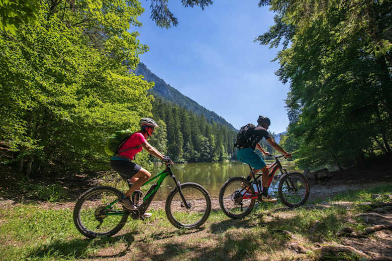 Von der Tourist Info in Ruhpolding fährt man auf ruhigen Straßen und Wegen mal sanft bergauf, mal leicht bergab, mal durch stillen Wald, oder entlang der Urschlauer Achen. Der markante Rauschberggipfel blitzt immer wieder auf und nicht nur der klare Taubensee lädt zur Rast. In Laubau lohnt ein Besuch im historischen Holzknechtmuseum und der Freizeitpark im Ortsteil Brand ist ein Ausflugshighlight für die ganze Familie. Überhaupt ist diese Radtour auch für die Kleinen ein Kinderspiel.