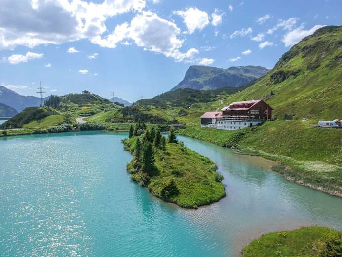 Ausgangspunkt für diese Route ist das Infobüro in Galtür. Mit dem Bike geht es anfangs entlang der Trisanna, später neben dem Zeinisbach auf dem Paznauner Radweg bis zum Alpengasthof Zeinisjoch auf knapp 2.000 m. Hier wird das Mountainbike im Bikedepot sicher abgestellt. Der Alpengasthof, der sich bereits in Vorarlberg befindet, lädt mit der großen Sonnenterrasse zur gemütlichen Rast ein. Von hier folgt man dem landschaftlich schönen Wanderweg Richtung Verbella Alpe (1.938 m). Auch auf der idyllisch gelegenen Alpe bietet sich eine Einkehr umgeben von spektakulärer Natur an. Entlang des Verbellabachs führt der Weg in eine einzigartige Hochmoorlandschaft bis zum Wiegensee. Der See wurde 2021 in der Show „9 Plätze – 9 Schätze“ zum schönsten Platz Österreichs gekürt.