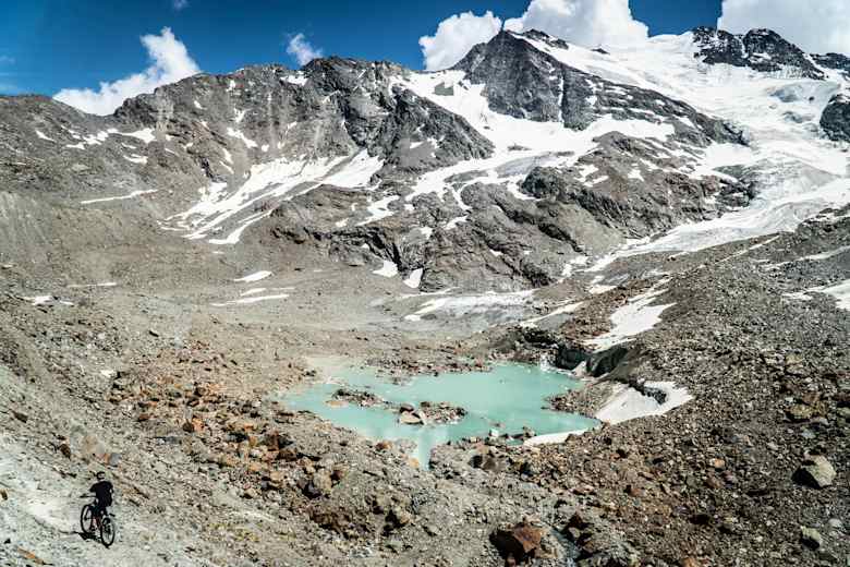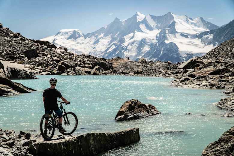 Hochalpine Gletscherwelt auf der Bikeroute Gletscherseewjini Foto: Saastal Tourismus AG, Puzzle Media