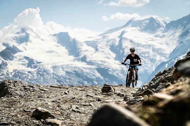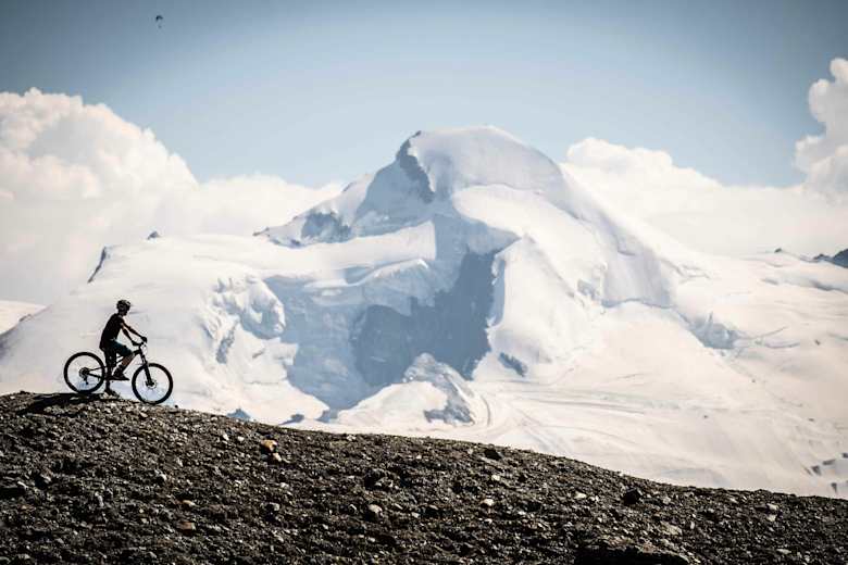 Grandiose Aussicht auf der Bikestrecke Gletscherseewjini Foto: Saastal Tourismus AG, Puzzle Media
