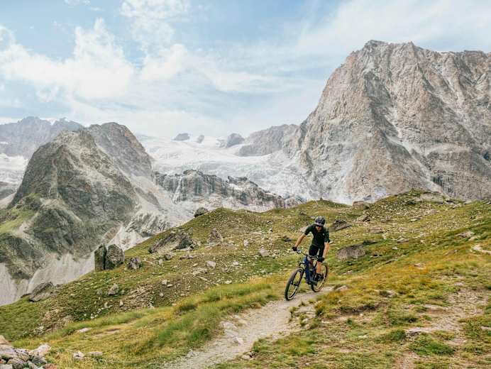 Konditionsstarke Fahrer können auch direkt von Zermatt aus starten - bzw. ist die Tour auch mit dem E-Bike machbar.