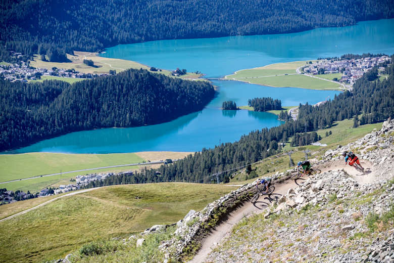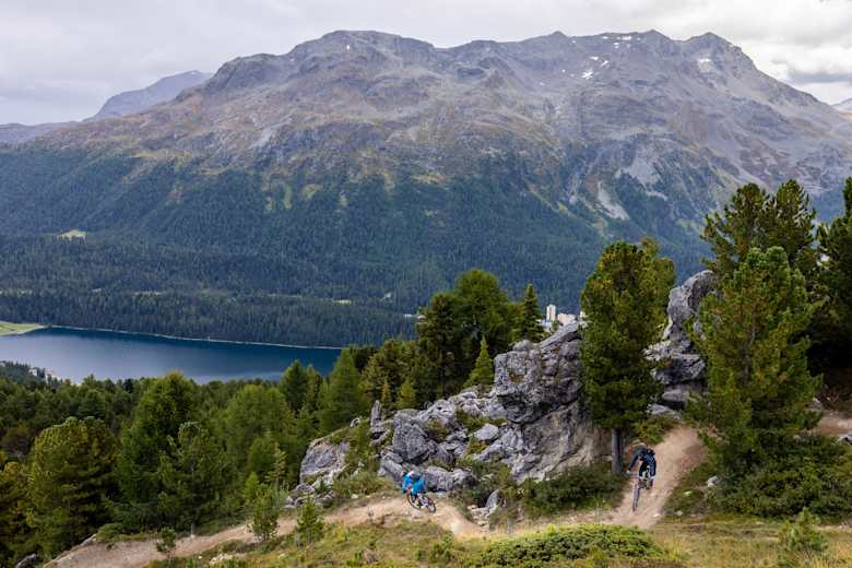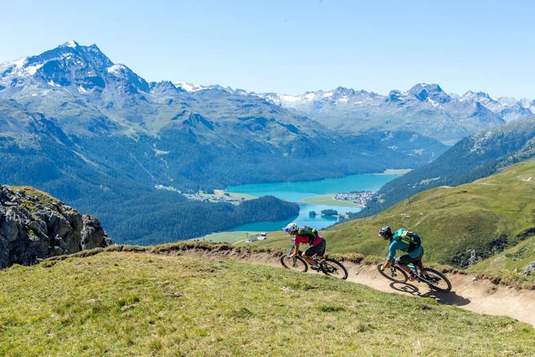 Diese mittelschwere Mountainbiketour bei Celerina im Engadin in Graubünden verbindet alle Flow Trails an der Corviglia an einem Tag. Mit der Bergbahn kommt man bequem zum Ausgangspunkt und startet dort den nächsten Trail.