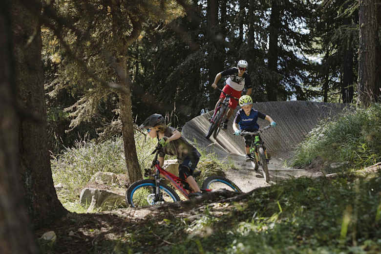 Auf Corviglia gibt es einen Skills Park, für diejenigen, die vor dem ersten Flow Trail Kurven und Sprünge trainieren möchten.