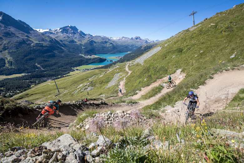 Gestartet wird das Abenteuer mit dem Marmotta Flow Trail, der einfachste der drei Flow Trails. Über Wellen und um Kurven führt der Flow Trail wieder runter nach Marguns. Dort bringt der Sessellift Sie wieder nach Corviglia hoch, wo der zweite Flow Trail beginnt, der WM Flow Trail. Dieser schlängelt sich den Hang runtern nach Trutz.