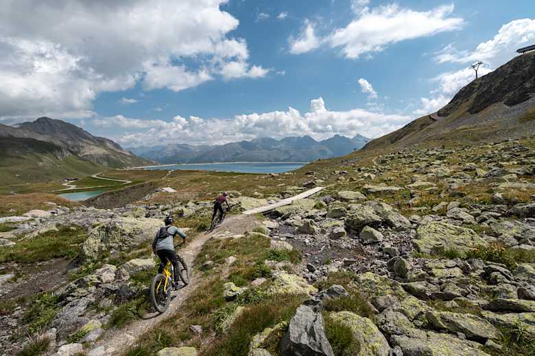 Die anspruchsvolle Mountainbiketour beginnt an der Bergstation der Seilbahn des Piz Nair im Engadin in Graubünden. Sie endet nach 1300 flowigen Trailhöhenmetern am Champfèrersee. Die Tour kann gut mit öffentlichen Verkehrsmitteln erreicht werden.