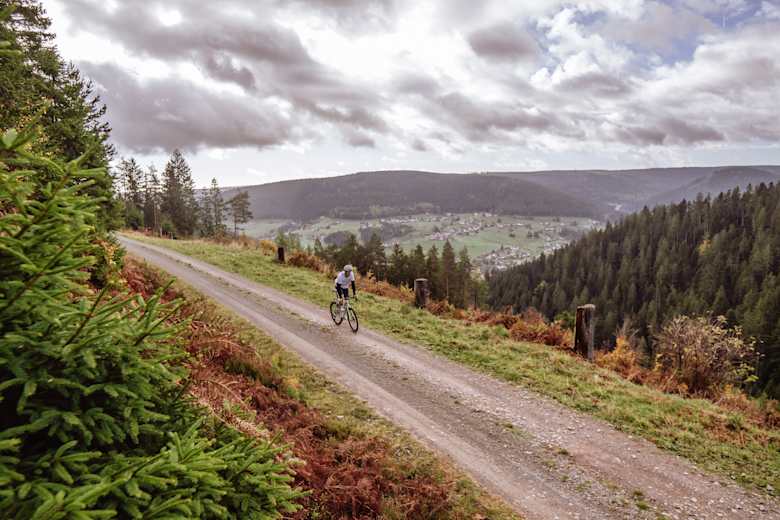 Anschließend kommt die schnelle Abfahrt durch den Nationalpark Schwarzwald in das Tonbachtal. Mit genügend Schwung rollt es in den letzten Anstieg über feinen Schotter auf den Rinken zur Wandehütte Sattelei.