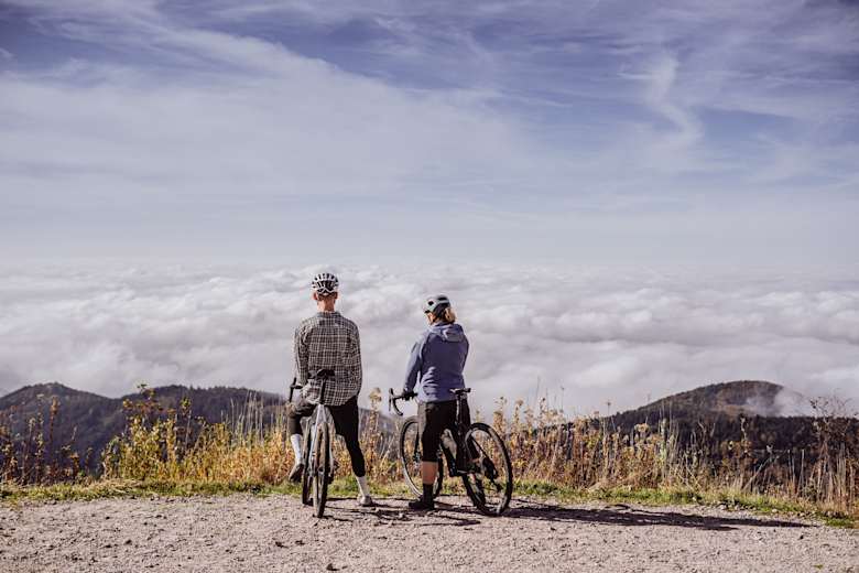 Gravelbiker über dem Nebelmeer Foto: Max Günter, CC BY-ND, Nationalparkregion Schwarzwald - Baiersbronn / Murgtal