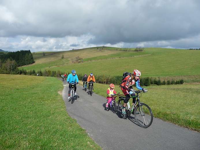 Weiter auf der I-6 führt ein schöner Radweg zum Etappenziel am Fuße des Geisingbergs (824 m) mit Aussichtsturm. In Geising mit seinem historischen Stadtkern biegt die Route SM links ab, die Etappe endet aber geradeaus weiter am Bahnhof.