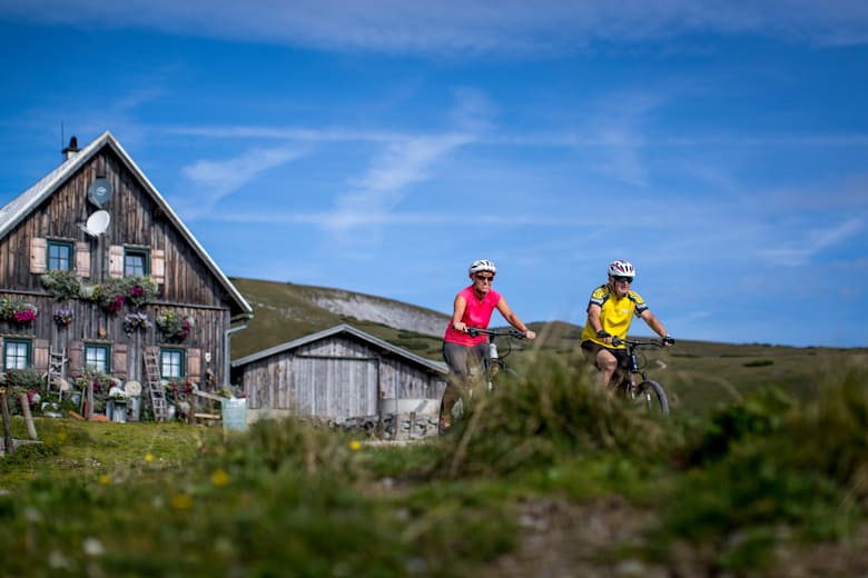 Radfahren auf dem Schneealmplateau in der Steiermark - das verspricht jedenfalls aussichtsreich zu werden. Außerdem gibt es mehrere schöne Einkehrmöglichkeiten.