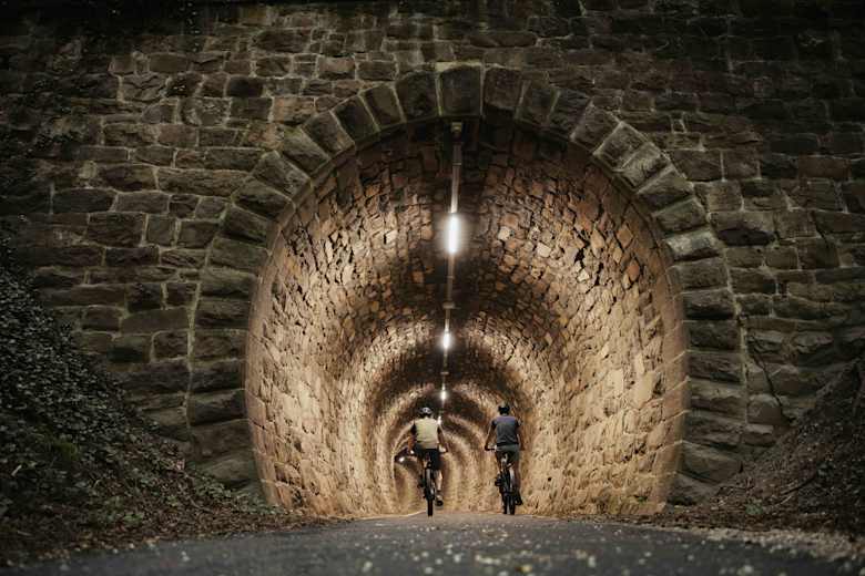 Mit dem Bike durch einen Tunnel Foto: IDM Südtirol, Alex Moling