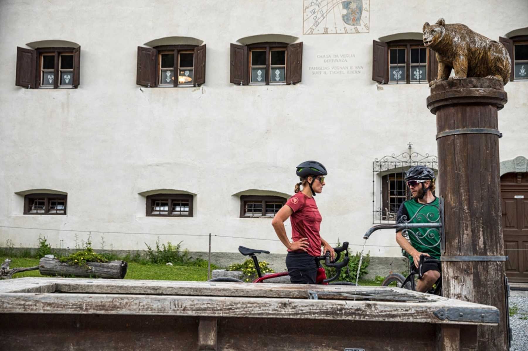 Spektakuläre Brücke über den Inn bei Scoul Foto: Tourismus Engadin Scuol Samnaun Val Müstair AG Im wilden Val S-charl mit dem Fluss Clemgia Foto: Tourismus Engadin Scuol Samnaun Val Müstair AG Trinkflasche füllen im Bergdorf S-charl Foto: Tourismus Engadin Scuol Samnaun Val Müstair AG Pure Wildnis nach S-charl in Richtung Alp Astras Foto: Tourismus Engadin Scuol Samnaun Val Müstair AG Links der Fluss Clemgia, rechts die feine Schotterstrasse Foto: Tourismus Engadin Scuol Samnaun Val Müstair AG Am Weg von der Alp Astras zum Pss da Costainas Foto: Tourismus Engadin Scuol Samnaun Val Müstair AG Wilde Natur Foto: Tourismus Engadin Scuol Samnaun Val Müstair AG God da Tamangur - höchst gelegener Arvenwald Europas Foto: Tourismus Engadin Scuol Samnaun Val Müstair AG Singletrail vor dem Pass da Costanias Foto: Tourismus Engadin Scuol Samnaun Val Müstair AG Abkühlung im Bach Rom in Sta. Maria Foto: Tourismus Engadin Scuol Samnaun Val Müstair AG Bildergalerie (10)