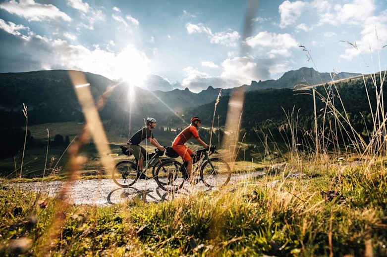 Eingebettet zwischen hohen Berggipfeln steigt die Route gemächlich, zwischendurch mit kurzen, steilen Rampen bis nach S-charl auf 1.808 m ü. M. Danach beginnt der finale Aufstieg zum Dach der Trans Grischun – zum Pass da Costainas auf 2.250 m ü. M. Kurz nach S-charl erblicken Sie auf der linken Talseite den God da Tamangur. Es ist der höchst gelegene, zusammenhängende Arvenwald Europas. Natur und Gravelbike-Erlebnis vom Feinsten.