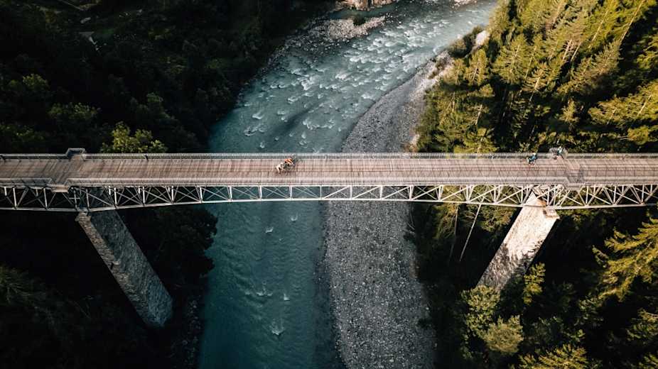 Spektakuläre Brücke über den Inn bei Scoul Foto: Tourismus Engadin Scuol Samnaun Val Müstair AG