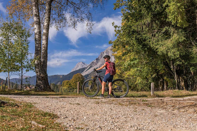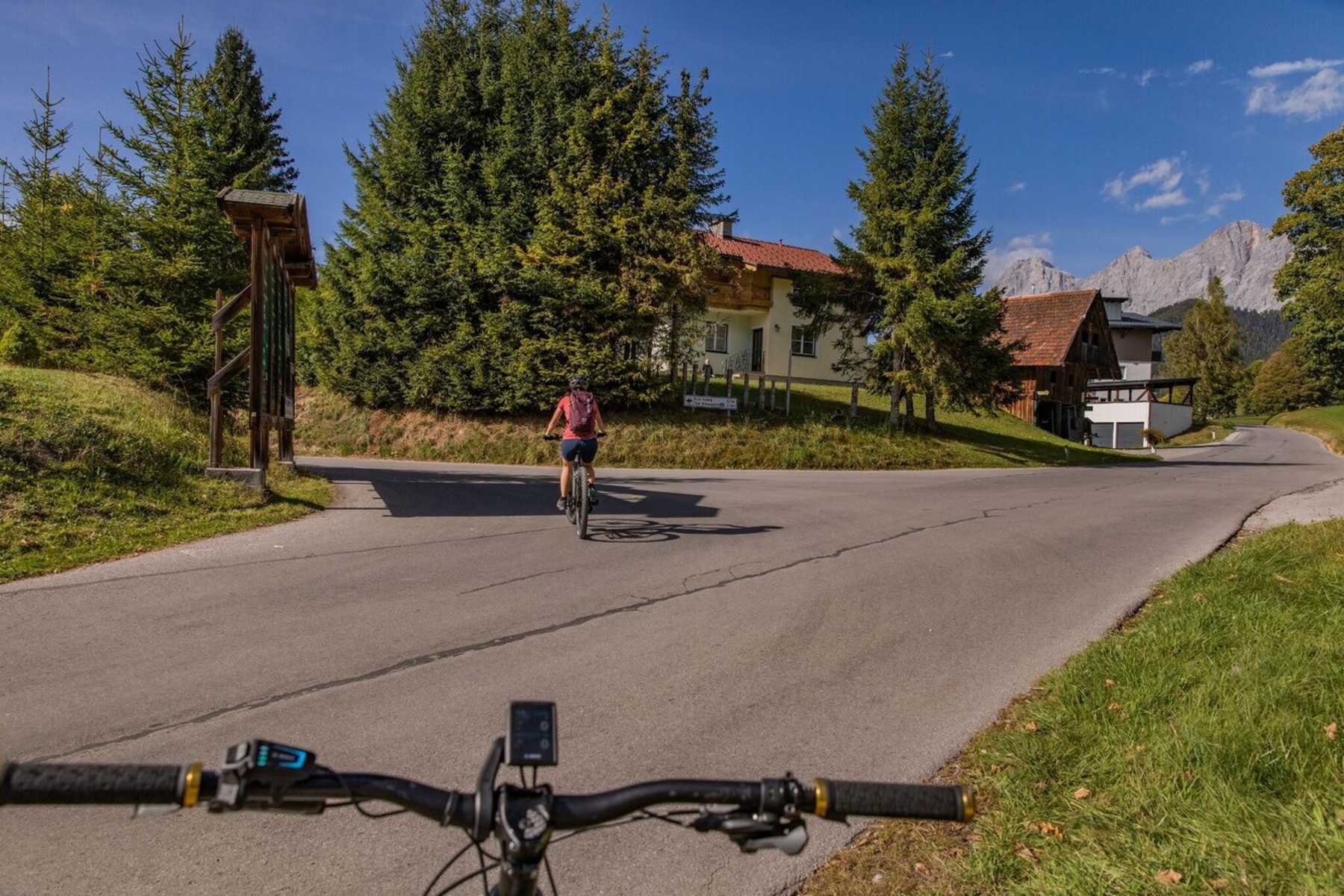 Abwechslungsreiche Bike-Runde am Sonnenplateau Ramsau am Dachstein, die auch perfekt mit dem Gravel-Bike zu fahren ist. Nach kurzen Asphaltpassagen führt die Strecke hauptsächlich entlang von Forstwegen und einfach zu fahrenden Pfaden. Die einfache Tour umfasst gut 27 km und es sind 420 Höhenmeter zu bewältigen. Immer wieder genießt man schöne Ausblicke auf die Ramsau und auch auf den mächtigen Dachstein.