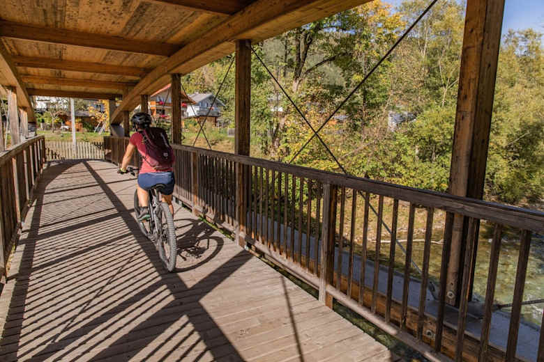 Über eine überdachte Holzbrücke Foto: Renè Eduard Perhab, Schladming-Dachstein