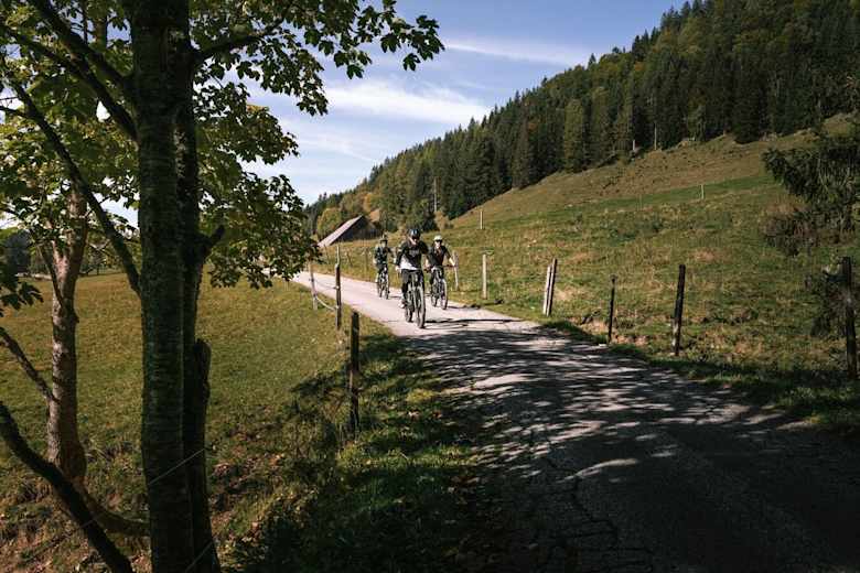 Nach dieser Erfrischung geht es fast ausschließlich bergab durch den Wörschachwald. Hier taucht man ein in die Stille des Waldes, bevor man die B145 unterquert und den kleinen Ort Klachau erreicht. Ein gut befahrbarer, asphaltierter Weg führt nun weiter nach Untergrimming, wo die Strecke flach und entspannt verläuft.