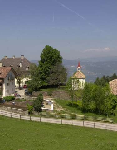 Beim Schild in Richtung Karneid biegen Sie links ab und erreichen kurz danach eine steilere, betonierten Abfahrt, woraufhin ein Naturweg folgt, der kurz durch den Wald führt und dann wieder auf eine asphaltierte Nebenstraße mündet. Diese führt Sie nach Oberkarneid, wo Sie auf die Karneider Straße treffen. Hier biegen Sie rechts ab und folgen der Straße bergauf. Vorbei an den Einkehrmöglichkeiten Wiedenhof und Oberölgart führt die Route zum malerischen Kirchlein Kaserbild auf 1.296 m, das mitten im Wald liegt.