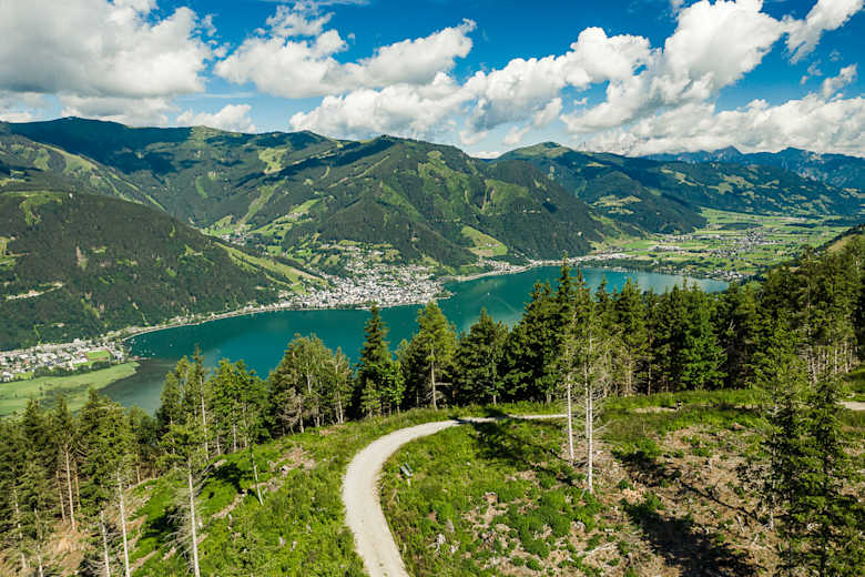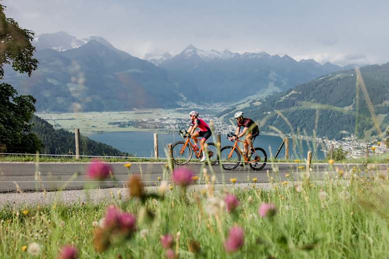Schöne Gravel-Bike-Rundtour von Zell am See, die erst entlang des Sees bis Thumersbach führt. Hier beginnt der Anstieg auf die Erlhofplatte. Immer wieder bieten sich schöne Foto-Spots und Panoramablicke über den Zeller See. Die mittelschwere Runde ist rund 25 km lang, führt auf Asphalt- und Forstwegen und man sollte ca. 3 h einplanen.