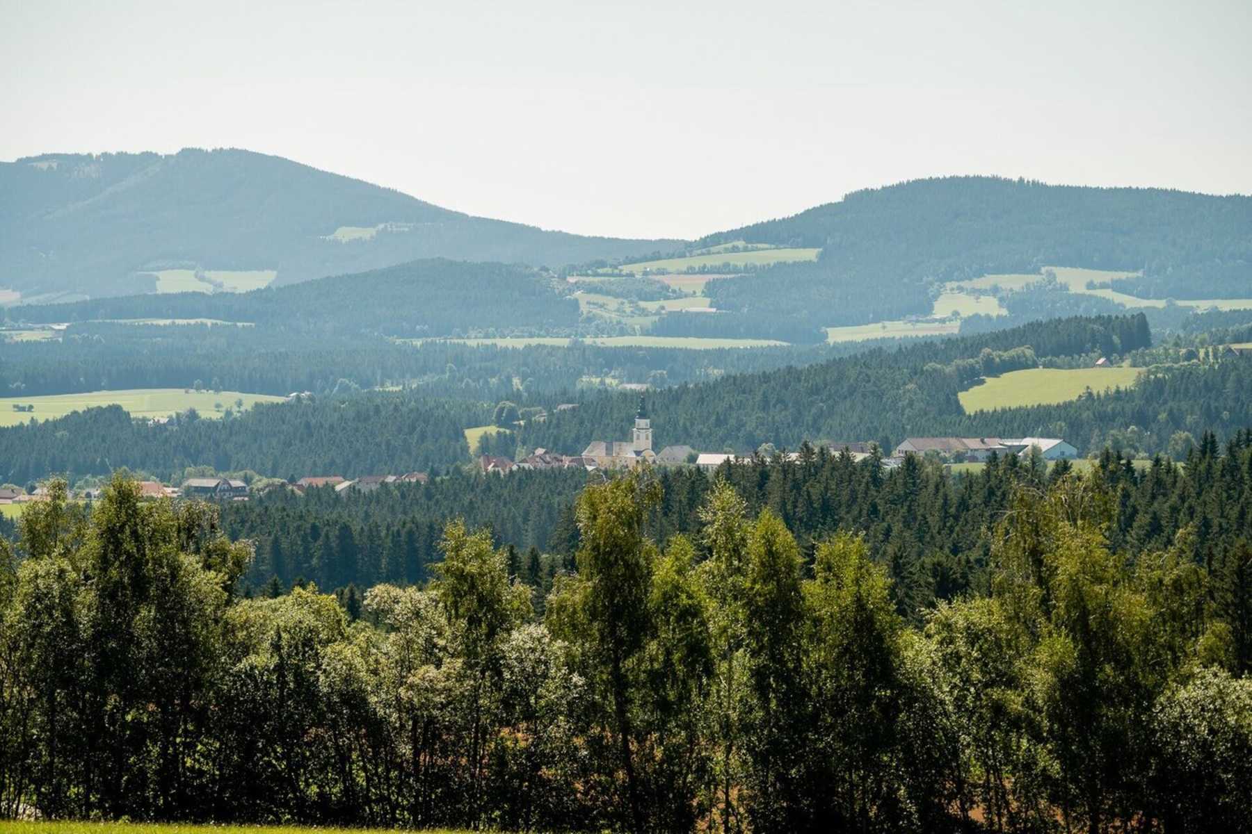 Diesem Weg folgen wir ca. einen Kilometer bis zu einem Wegkreuz, bei dem wir rechts einbiegen. Ca. einen Kilometer nach dem Gasthof halten wir uns zuerst links und dann rechts. Diesem Weg folgen wir bis wir unser erstes Ziel, die Wildwiese mit der Hütte, dem Aussichtsturm und der Waldhauserkapelle erreichen.