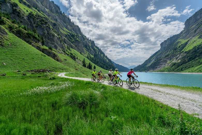 Ein stetes Auf und Ab prägt den ersten Teil dieser abwechslungsreichen Tour von Brigels ins Naturparadies Ladral. Der Abstieg nach Andiast bringt die Bremsscheiben auf Betriebstemperatur, bevor im Anstieg zum Panixer Stausee wieder die Oberschenkel gefordert sind. Oben angekommen, lädt der See zu einer wohlverdienten Pause ein. Danach rollt es sich bequem hinunter ins charmante Dorf Pigniu (romanisch für Panix). Der letzte Abschnitt führt nochmals bergauf und wieder zurück nach Brigels.