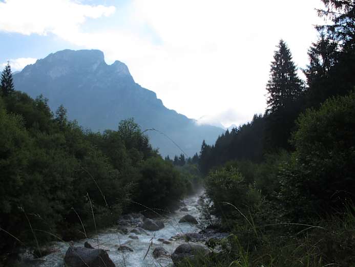 Ein sehr anspruchsvoller Singletrail schlängelt sich Richtung Tal und endet bei der Capanna Cima Comelle (1.333 m) in Garestal. Man rollt nun talwärts bis Canale d’Agordo (977 m) und auf der Radroute talwärts durch die Valle del Biois bis Cencenighe (780 m).