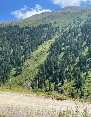 Nun weiter den Weg Nr. 31a zur abgebrannten Igler Alm einschlagen. Man folgt dem Schotterweg 350 bis zur Heiligwasser Kapelle.