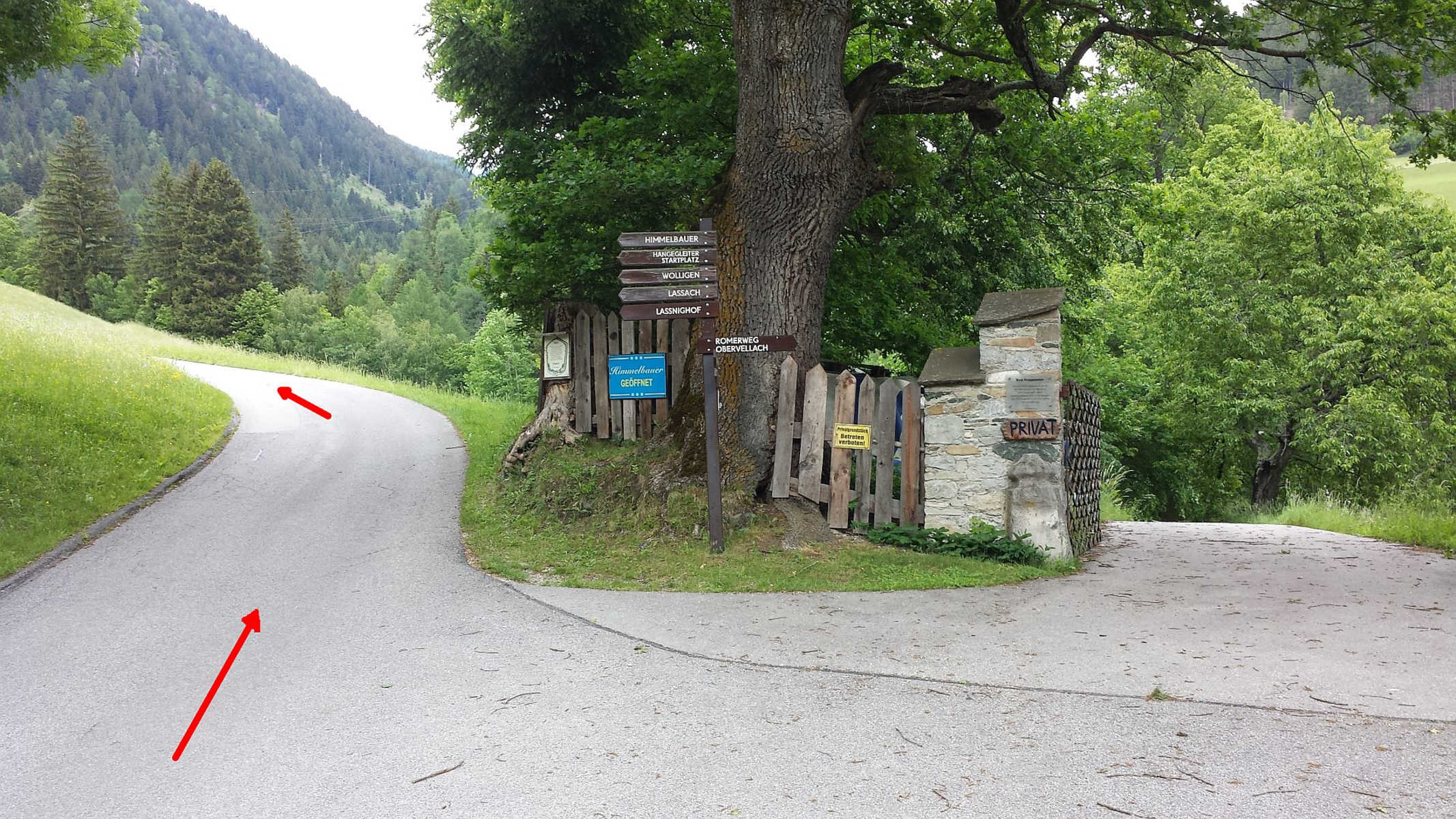 Vom Hauptplatz Obervellach geht es durch die Ortschaft Richtung Seilbahnplatz zum Römerweg nach Raufen.