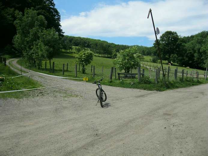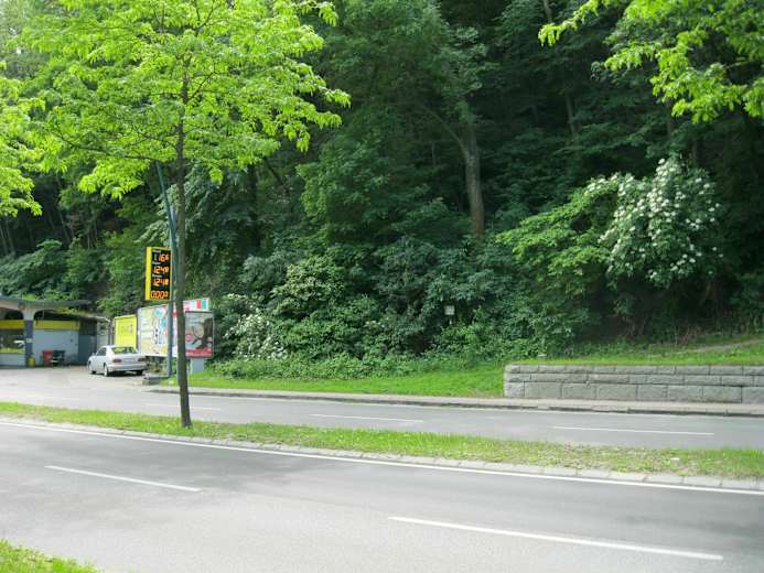 Rechts von der Tankstelle zweigt der Mountainbikeweg in den Wald ab Foto: Mathias Kautzky
