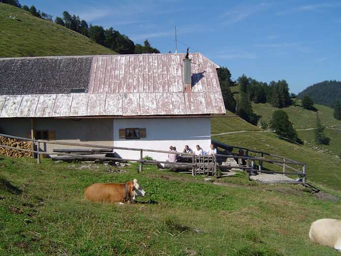 Wer nicht den gleichen Weg zurück fahren möchte, macht sich auf den Trail zur Kochler Alm. Der ist allerdings anfangs sehr ambitioniert und ruppig mit hohem Felsanteil... Er wird dann jedoch richtig schön zu fahren und schließlich gelangt man am Talflecksattel wieder auf eine Forststraße. Linker Hand startet dort der Trail zur Kotalm, von der man auf einem Forstweg an der Kleinen Laine entlang zurück nach Jachenau gelangt.