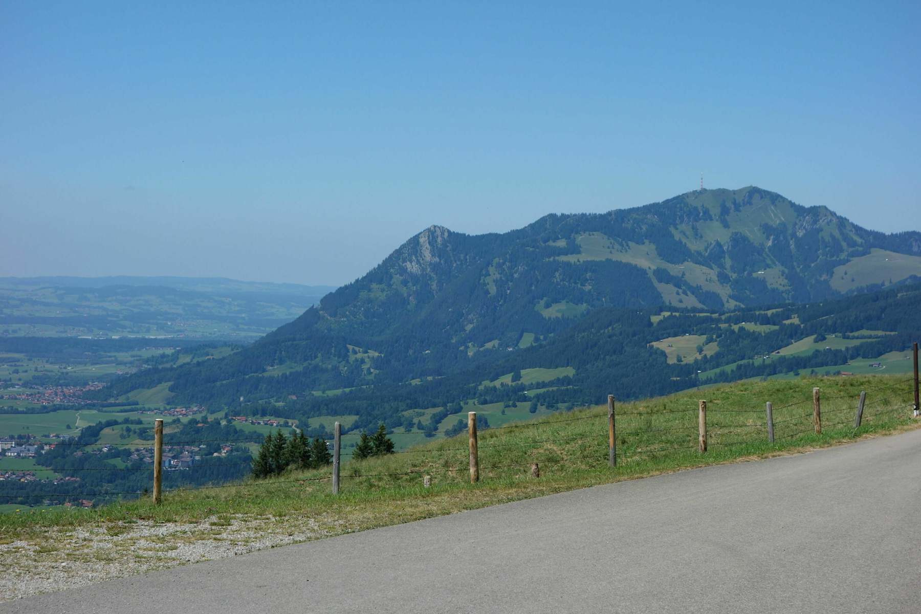 Vom Freibad in Altstädten geht es durch den Ort und in östlicher Richtung auf den Sonnenkopfweg. Ihn folgt man bergauf (Beschilderung Alstädter Hof). Für 5,5 km geht es auf der geteerten Straße bergan. Ideal um beim Kurbeln den Blick ins Illertal, auf die gegenüber liegende Hörnerkette und den Allgäuer Hauptalpenkamm zu genießen.