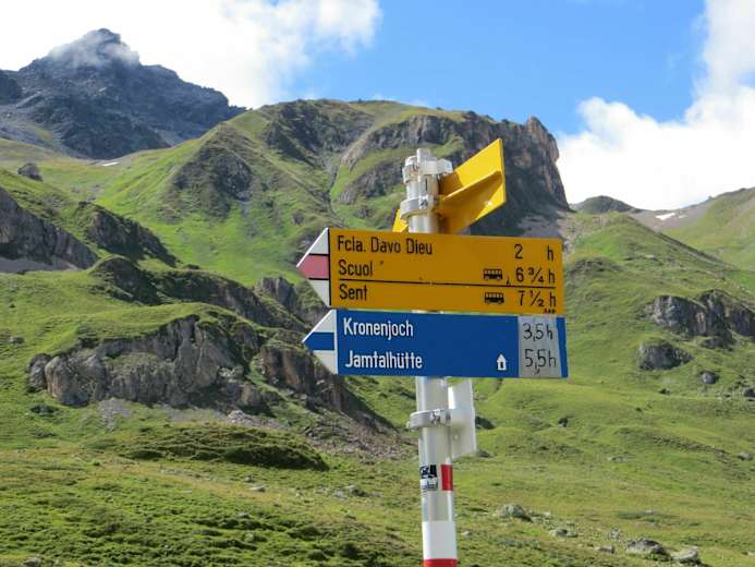 Diesen erreicht man auf einem Trail ab der Heidelberger Hütte, es geht teils steil bergauf bis zum Pass, den man nach rund einer Stunde Schieben (es gibt nur wenige fahrbare Passagen) erreicht. Man sollte unbedingt schon beim Aufstieg Ausschau nach den Murmeltieren halten, die sich links und rechts neben dem Weg zum Fimberpass blicken lassen. Vom Pass führt ein schwieriger Trail durch das Val Chöglia, ab 2.000 Metern Höhe beginnt eine einfachere Piste. Im Schweizer Ort Zuort (1.740 m) wird man von einer wirklich netten Hütte auf der linken Seite beim Ortseingang begrüßt, hier gibt es Essen und Getränke.