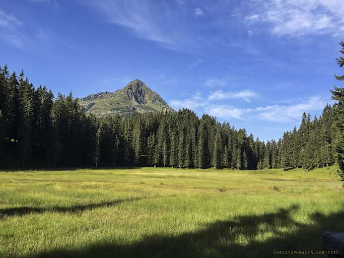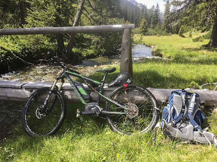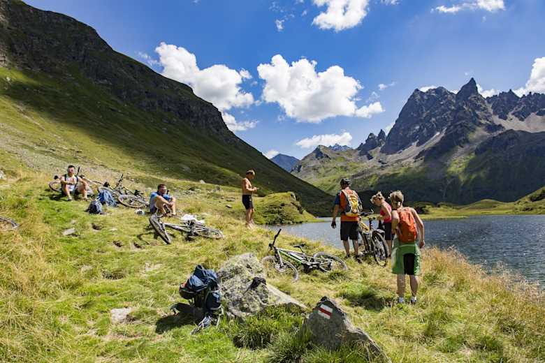 Mit der Kristbergbahn auf den Kristbergsattel, und gemütlich auf dem Höhenweg einrollen, schöne Tiefblicke inklusive. Später auf der Hauptroute im Silbertal immer wieder Wasserflaschen auffüllen, auch in diesem Hochtal kann es sehr warm werden. Kurz vor dem Langen See kann das Bike im Bereich der Freschalpe stehen gelassen werden, und in ca 20 Min. Fussmarsch ist man beim wunderschönen See, einem landschaftlichen Kleinod.