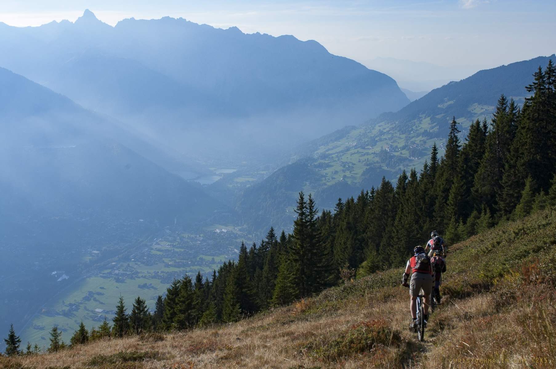 Mit der Hochjochbahn auf das Hochjoch, von dort kurz auf einer Forststraße bis zum Aussichtspunkt. Von dort führt die teils steile, selten ausgesetzte aber meist technische Abfahrt über Waldpfade, Lichtungen und Mähder. Im unteren Teil sind zwei kurze Schiebestrecken (Fahrverbote hier unbedingt respektieren – einhalten, Gatter schliessen) zu beachten, bis man geschüttelt und gerührt wieder in Schruns ausrollt. Achtung: Wanderer haben immer Vorrang, bitte keine Abschneider oder Bremsspuren am Trail. Serpentinen bitte ausfahren und Hinterrad umsetzen, und nicht abschneiden, da der Weg darunter leidet.