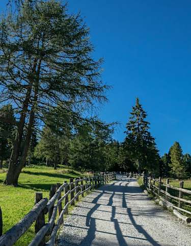 Rechts Richtung St.Kassian abfahren, vorbei am Hotel Valparol, vor St. Kassian an der Talstation Piz Sorega 1.540 m, in den Kunstweg „Trù di artis?“, den St.-Kassianer-Bach entlang bis zum Kraftwerk „Gadera“ in Stern, unter der Brücke durch und immer der Gader entlang, Richtung Pedraces bis vor Badia/Abtei, bergauf zum Dorf St. Leonhard, auf asphaltierter Straße bergauf bis zum Weiler Valgiarei 1.590 m, auf den Armentara-Rundweg, schöner Singletrail mit kurzer Schiebepassage bis nach Furnacia 1.570 m, Abfahrt bis zu den Lunz-Höfen und kurz bergauf nach Wengen.