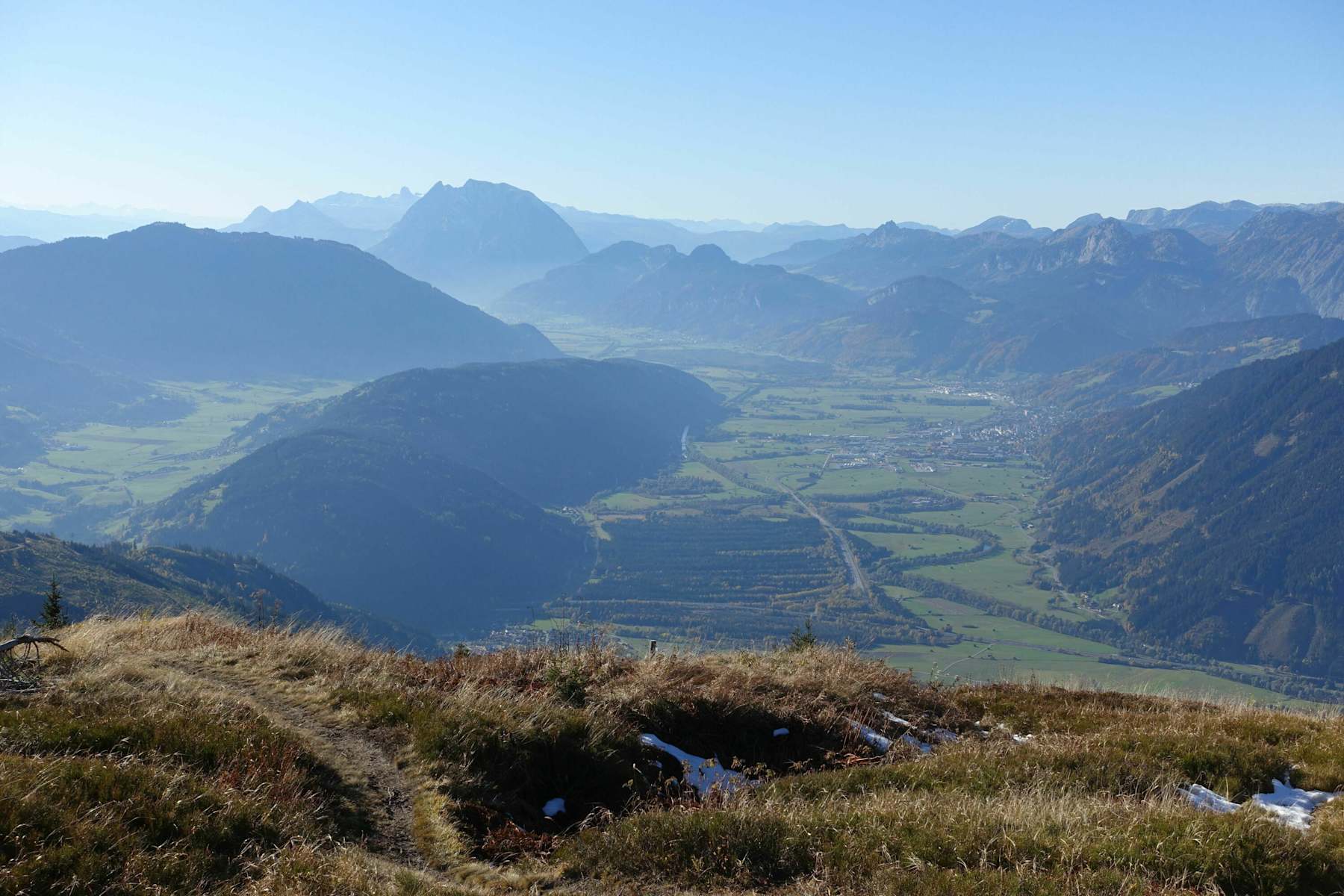 Mit dem Mountainbike aufs Dürrenschöberl: Das Dürrenschöberl zählt zu den aussichtsreichsten 360 Grad-Panoramagipfeln, die man mit dem Mountainbike erobern kann. Auf 1.737 m blickt man vom westlichen Ausläufer der Eisenerzer Alpen in Richtung Grimming, Dachstein, Totes Gebirge, Gesäuse, Rottenmanner Tauern etc. Lohnende Mountainbiketour in der Steiermark.
